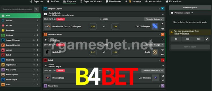 O B4Bet oferece uma grande seleção de opções de apostas em e-sports com probabilidades competitivas
